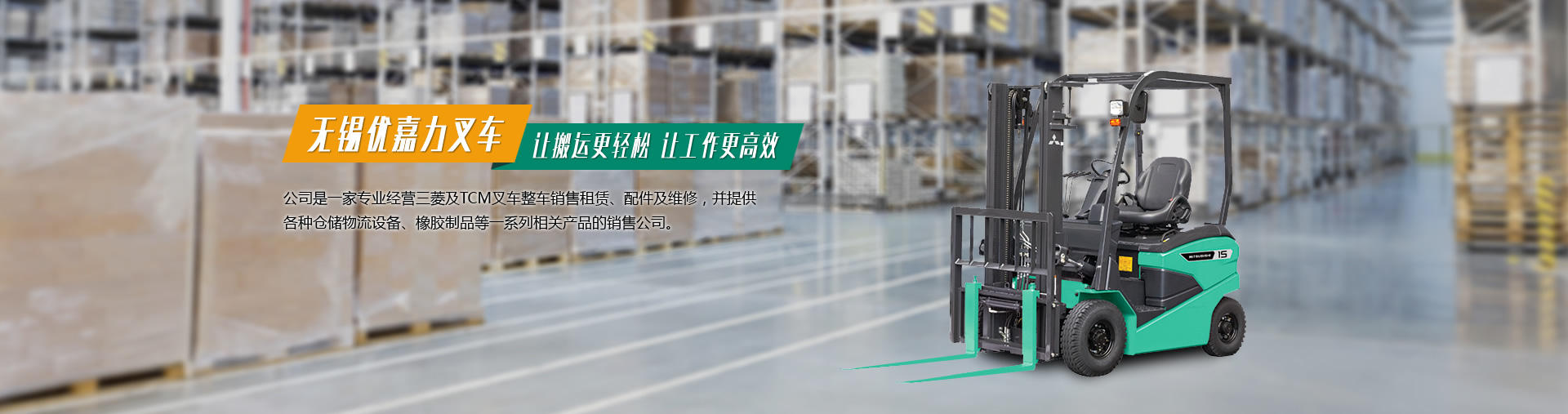 無錫優嘉力叉車銷售服務有限公司是一家專業經營三菱及TCM叉車整車銷售租賃、配件及維修,并提供各種倉儲物流設備、橡膠制品等一系列相關產品的銷售公司。